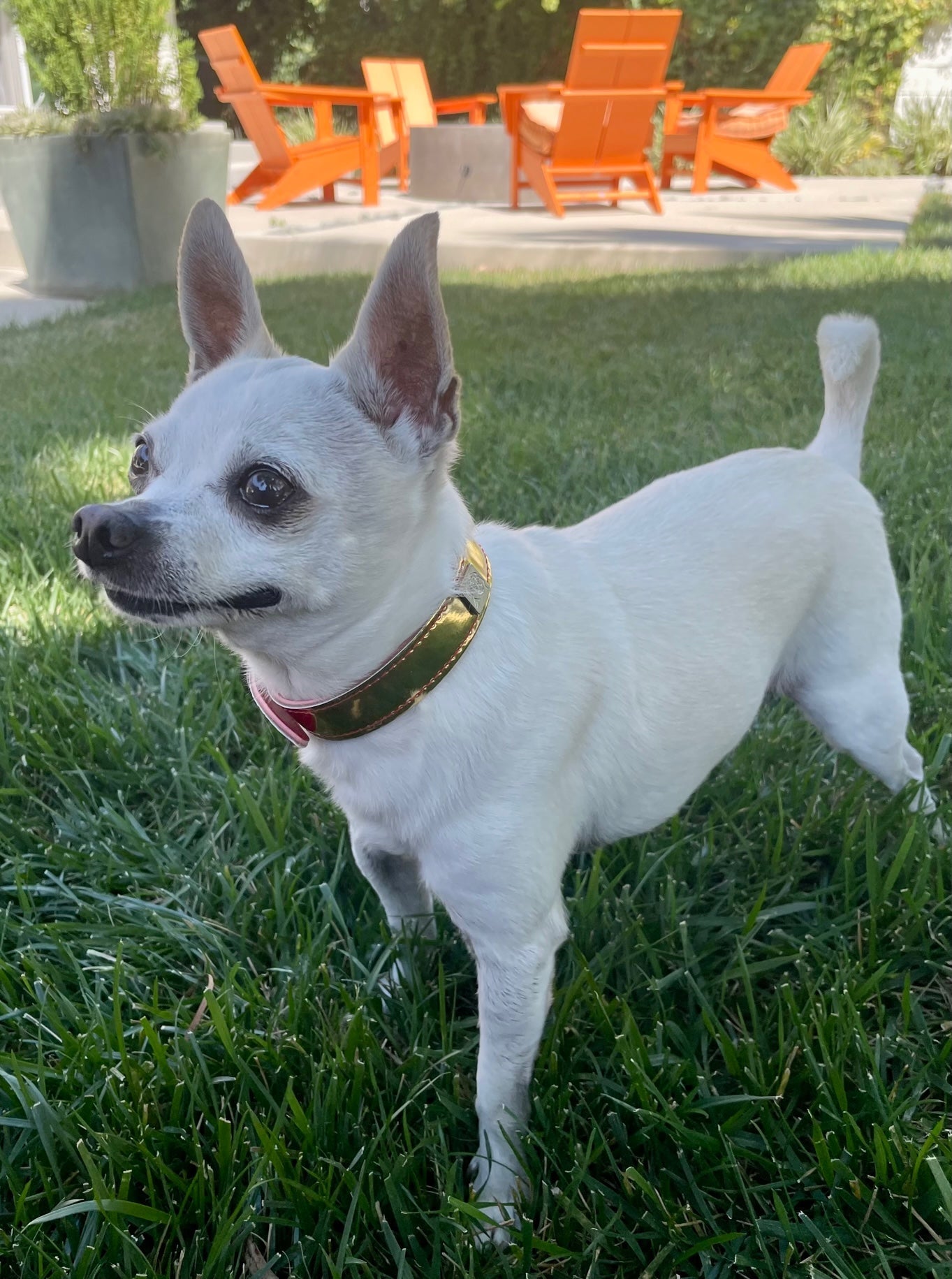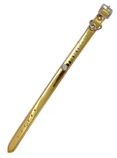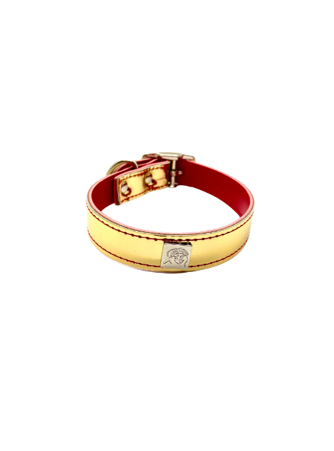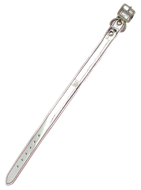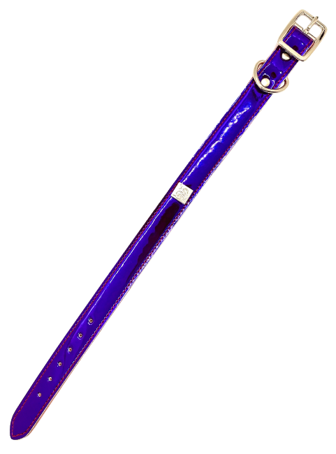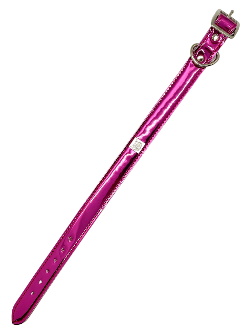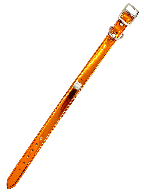 Vegan collars with rock'n'roll style. Made using the remnants from the Get'm Get'm Mirror Reflective Guitar Straps, you can help us reduce waste, while making your pet look totally badass doing it. These collars have a high shine, mirror-like, finish, but in bright and beautiful colors. Available in Gold, Silver, Fuchsia, Purple, and Orange.